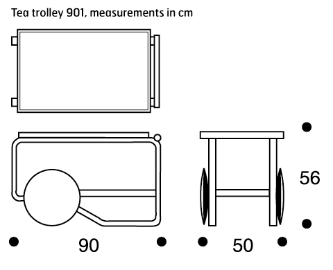 We have the tea trolley 901 with black linoleum shelves for you to see in our showroom by appointment. Delivery time approx. 4-6 weeks.